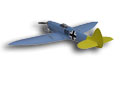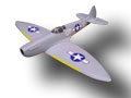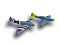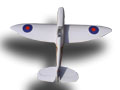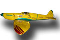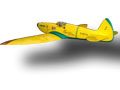 MK 6-7 high altitude fighter The idea behind this plane was to construct it as light and powerful as possible. Due to its wingspan a normal Spitfire may only be equipped with a 2.5 cc motor according to the rules of aircombat. With the extension of the wingspan to 1010 mm this model may be flown with a motor with 3.5 cc. This Spitfire can also be rebuilt in other versions. The geometry of the wing is identical in all versions, only the wingtips are different. Therefore the surface load is very low. The Spitfire has an airfoil developed by Pe Reivers. With this airfoil the model has the special ability to fly tight curves without loosing speed. It is a very slim airplane. The motors will fit tightly in the housing when turned by 180°. |