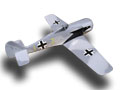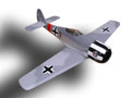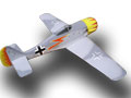 | Focke Wulf 190 Die Focke Wulf ist das erste von mir entwickelte Voll GFK Modell. Das Modell wird mit einem 2,5 ccm Motor geflogen. Das Modell ist schnell unterwegs und sehr wendig. Mit einem 2,5 ccm MVVS geht die Post aber richtig ab. Das Höhenruder konnte hier konstruktionbedingt auch mit Elastik-Flaps ausgestattet werden. Wenn man den Schalldämpferanschluss bei einem normalen 2,5 ccm Motor etwas kürzt , verschwindet der Motor mit Schalldämpfer unter der Motorhaube. |